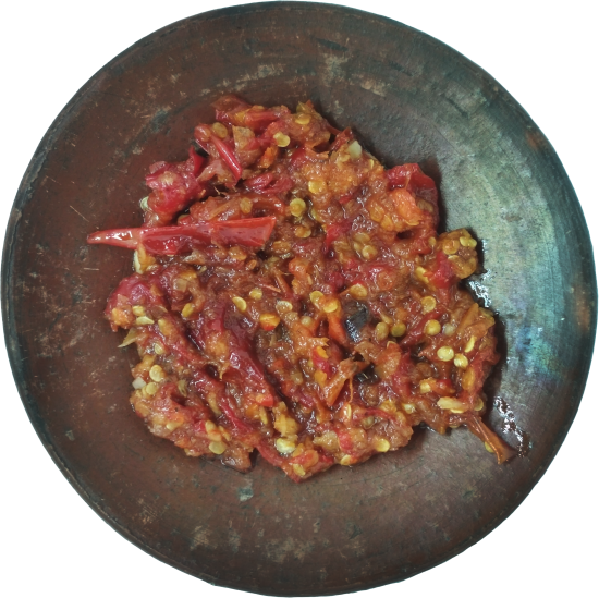 Authentic sambal from Bali which consist of sliced chili and onion. Sprinkled by fried onion to stimulate your appetite.